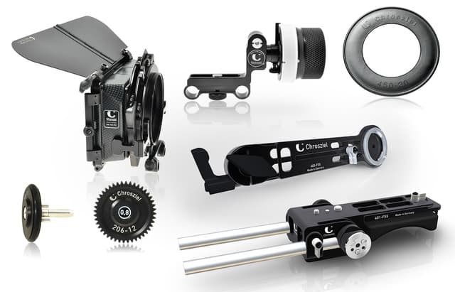 Kit MB450R2 FølgeFokus for Sony PXW-FS5 (og linser med mindre diametre): 450-R2 MatteBox med fransk flagg (450-11), pivot-mech. for valgfrie sidevinger, endeplate med diameter Ø114 / 110mm, 450-20 Flexi-Insertring 110: 75 / 98mm, 401-FS5 LWS med Ø 15mm stenger, l. 205mm, 403-FS5 håndtaksforlengelse 206-05S DV StudioRig, 206-12 Girstyring cine mod 0,8, Ø 36,8 mm, 206-17 Friksjonsgir Ø34mm