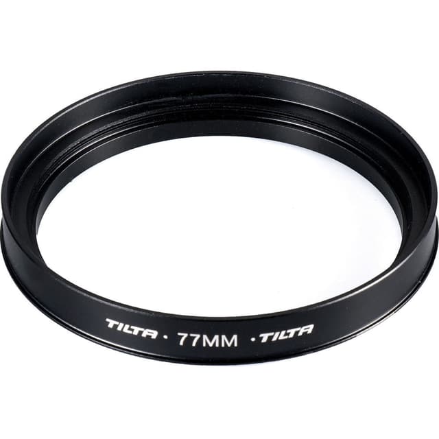 Denne Tilta 77mm adapterringen lar deg montere Tilta Mini Clamp-On Matte Box på objektiver som har en 77mm frontdiameter. Adapterringen skrues på fronten av linsen, og matte boksen klemmes deretter på adapterringen. Tommelfingerhjulet på siden av matte boksen brukes til å feste matte boksen ordentlig til adapterringen.