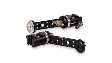 Disse Tilta forlengelsesarmene festes til NATO-skinnene på siden av gimbalen for å gi deg justerbare rosettbaserte armer, slik at du kan feste en rekke rosettbaserte betjeningshåndtak til oppsettet ditt.