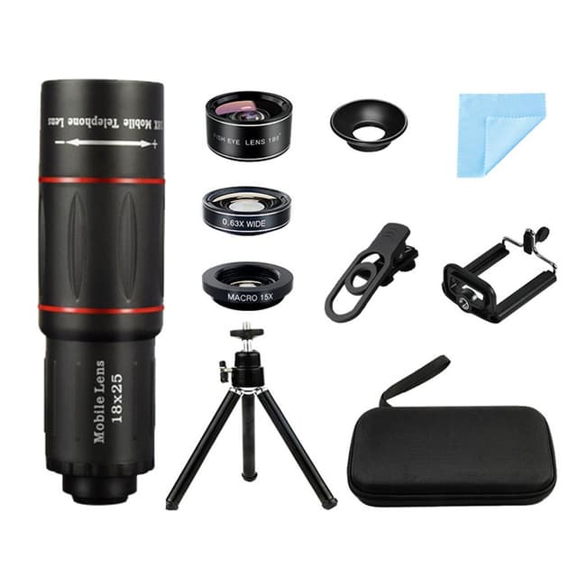 Allsidig fotograferingssett: Dette omfattende settet inneholder alt du trenger for å heve mobilfotograferingen din. Det 18x monokulære teleskopet, kombinert med 0.63x linsen, tilbyr en rekke fotograferingsalternativer, fra detaljerte nærbilder til ekspansive landskap. Den medfølgende telefonholderen og stativklipsen gir stabilitet og presise vinkeljusteringer, og sikrer skarpe, klare bilder hver gang. Enten du er en erfaren fotograf eller bare har begynt, gir dette settet verktøyene for å slippe løs kreativiteten din og fange fantastiske bilder og videoer kompatible med Huawei, Samsung, APPLE, Garmin og andre merker.