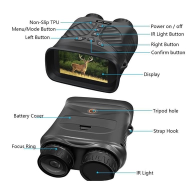 Brukervennlig design: Denne nattsynskikkerten er designet for enkel bruk, og har et brukervennlig grensesnitt med bakgrunnsbelyste silikonknapper som er enkle å betjene selv i fullstendig mørke. En-knapps bryteren gir rask og enkel aktivering, og sikrer at du aldri går glipp av et avgjørende øyeblikk. Kikkerten er også stativmonterbar, noe som gir stabilitet for lengre visningsøkter. Med 10 språkalternativer henvender denne kikkerten seg til et globalt publikum. Det langvarige 2600mAh batteriet tilbyr opptil 8 timers kontinuerlig bruk på den laveste infrarøde innstillingen og opptil 11 dagers standby-tid, noe som sikrer pålitelig ytelse under lengre utendørsaktiviteter. Kombinasjonen av intuitive kontroller, allsidige monteringsalternativer og lang batterilevetid gjør denne kikkerten til et praktisk og praktisk verktøy for ethvert nattlig eventyr eller overvåkingsoppgave.