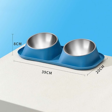Ergonomisk Dobbel Skål i Rustfritt Stål for Kjæledyr - Beskyttende Design Blå