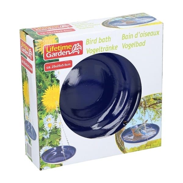 Hengende fuglebad for balkong eller hage.Lokk fugler og nytteinnsekter til hagen eller uteplassen ved å tilby drikkevann eller et härlig bad. Et hengende fuglebad er lettplassert både på uteplassen og i hagen og er dessuten det beste alternativet om du har katter i nærheten.Diameter: 25 cmFarge: BlåVekt: ca 1.016 kg