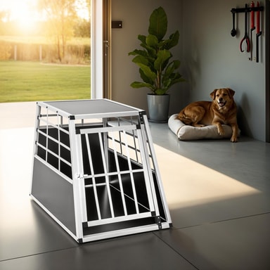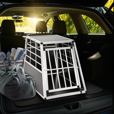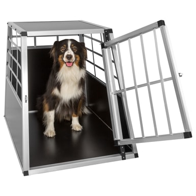 Enkelt hundebur av tectake for sikker transport av din firbeinte venn. Buret består av sperrede vinduer, slik at hunden din kan se hva som skjer for å begrense stress. Det romslige hundeburet med lett å rengjøre overflater betyr at hunden eller valpen din kan reise komfortabelt. Takket være det trapesformede designet vil buret passe komfortabelt inn i de fleste bilder (sjekk dimensjoner og fullstendige produktdetaljer ettersom størrelsen på bilene varierer). Hundeburet egner seg også som hvilested og retrett for hunden din hjemme eller på reise. Beskytt kjæledyret ditt, så vel som passasjerene i kjøretøyet ditt med vårt mobile hundebur.
