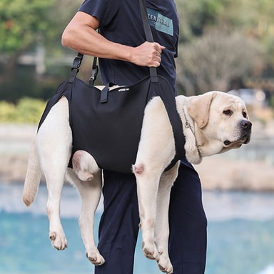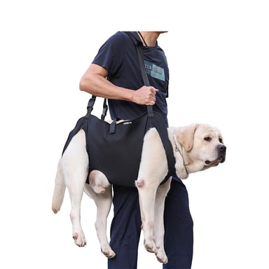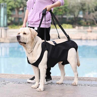 Rehabiliteringshjelpemiddel: Støtteselen er også et utmerket hjelpemiddel for hunder som gjennomgår rehabilitering etter skade eller operasjon. Det gir støtten som trengs for å bygge muskler og gjenvinne bevegelighet.