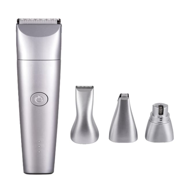 4-i-1 Pet Grooming Kit - 4 erstatningshoder, multi-posisjon og multifunksjonell hundetrimmer for pleie kan tilpasse seg forskjellige deler, for eksempel hundens føtter, smale deler som ansiktet, eller buede posisjoner som bena , og også utstyrt med et slipehode , kan være veldig bra for å polere hundens tånegler.
