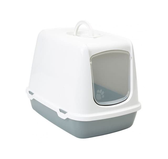 Oscar er et tradisjonelt dekket kattetoalett med plasthuske og et utskiftbart filter for å bli kvitt stygge lukter.