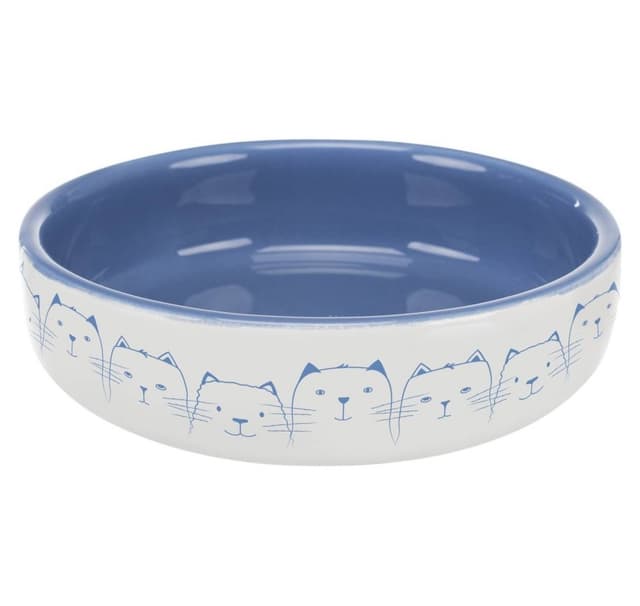 Katteskål for kortnesede raser, keramikk, 0,3 l/ø 15 cm, lyseblå/hvit