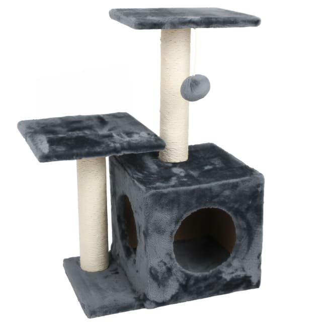 Klatretreet er plassbesparende og stabilt, så det passer inn i ethvert oppholdsrom. Det er skrapeområder på to nivåer, i tillegg til diverse tilleggsutstyr som en hule, plysj pompoms og utsiktsplattformer, slik at katten din aldri kjeder seg.