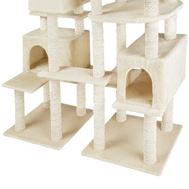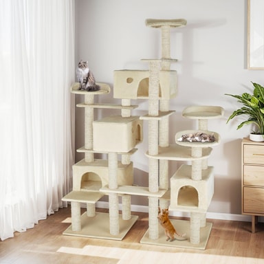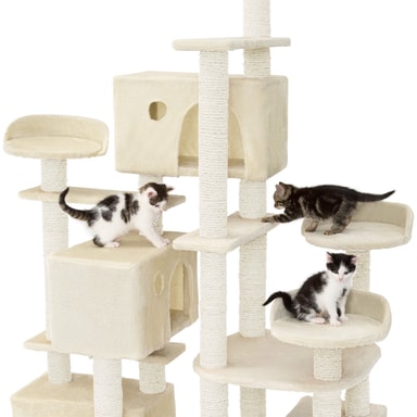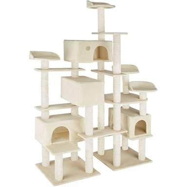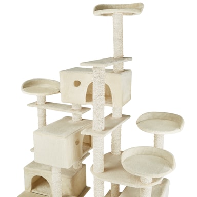 Med dette allsidige klorestativet fra tectake kan katten din ikke ønske seg mer. Kloretreet gir optimale muligheter til å leke, kvesse klørne eller trekke seg tilbake i de mange kattehulene. Stolpene mellom de mange ulike nivåene er trukket med sisal, noe som gjør det ideelt for katten å kvesse klørne. Da slipper du at katten river i stykker møblene dine! Utkikksplattformene gir katten gode muligheter for å ligge og slappe av. Det er fire huler som katten kan trekke seg tilbake og kose seg i. De to bunnplatene gir det høye stativet en god balanse og garanterer stabilitet - også når det går vilt for seg. Gled de små vennene dine og invester i et klorestativ fra tectake.