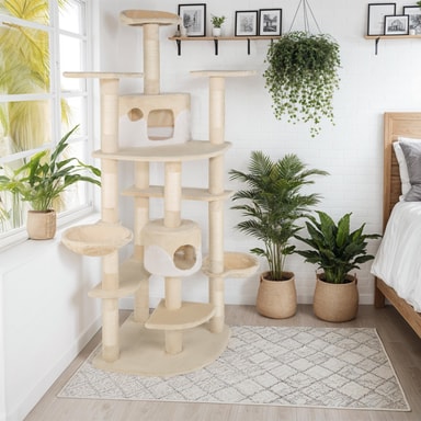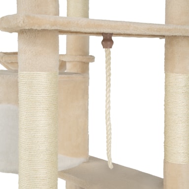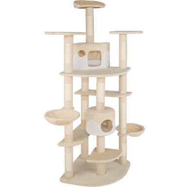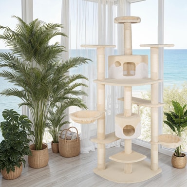 Dette kattetreet er en drøm som går i oppfyllelse for katter i alle aldre. Det fantastiske kattetreet inneholder en rekke skrapestolper som danner strukturen til kattetreet, og kombinerer plattformer, hengende leker, hengekøyer og til og med små kattehus. Alle kattungens eller kattens naturlige instinkter vil bli tilfredsstilt på dette omfattende aktivitetssenteret, mens de klatrer, hopper, kaster seg og leker, før de trekker seg tilbake til et av de koselige husene for en kattelur. Katter er naturlig nysgjerrige, så de høye utsiktsplattformene, hvorav den høyeste er på over 2 meter, bidrar til å tilfredsstille dette ved å gi dem en oversikt over hele rommet. I tillegg, takket være de mange skrapestolpene for katter, vil møblene dine forbli uplettede når det spinnende kjæledyret ditt finner sitt nye favorittskrapested. Enten for en enkelt katt eller kattunge eller en hel stolthet av kjæledyr, vil dette store kattetreet fra tectake gi enda mer berikelse til livene deres.