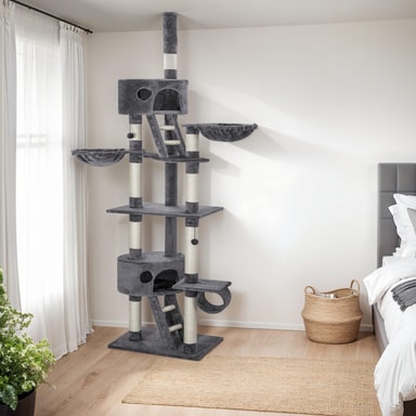 Et kattetre som når helt til taket ditt er en drøm som går i oppfyllelse for enhver katt. Denne ruvende skrapestolpen vil gi katten din et fantastisk aktivitetssenter hvor de kan leke, klatre og hoppe.Les mer om produktet