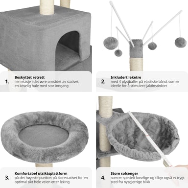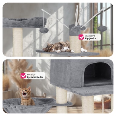 Dette robuste kattetreet med mykt plysjtrekk fra tectake er et paradis for enhver huskatt som elsker å utforske.Les mer om produktet