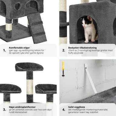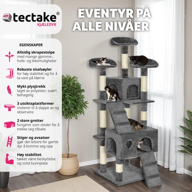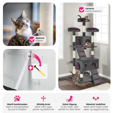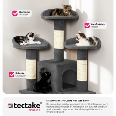 Et kattetre er det perfekte aktivitetssenteret for din katt eller kattunge å leke på og nyte. De mange skrapestolpene over forskjellige nivåer vil tillate katten din å fjerne gamle slirer og slipe klørne uten å forårsake skade på møblene dine.Les mer om produktet