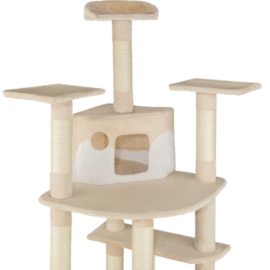 Dette kattetreet Nelly er et vertikalt aktivitetssenter for katten din, som når opp til en høyde på over 2 meter. Katten eller kattungen din vil elske å bruke de mange store katteklorestolpene, spredt over flere nivåer, for å slipe klørne og fjerne overflødige slirer, og dermed forlate møblene dine ufarget. Også inkludert i dette kattetreet er et kattehus og -hule, ideelt for kjæledyret ditt å ta en lur i en koselig, privat hule. Hengende tauleker er også inkludert som kattungen din vil elske å leke med når den lærer å jakte og kaste seg over. Plattformer i økende høyder er perfekte for å slappe av og slappe av, helt til den øverste plattformen, som katten din vil elske å sitte på og bruke til å kartlegge riket sitt fra sitt nye hjem! De koselige overhengende hengekøyene fullfører produktet som et perfekt kattelur-sted. Få dette svært berikende kattetreet fra tectake og tilfredsstill kattens naturlige instinkter for å klatre, hoppe og klø.