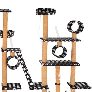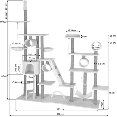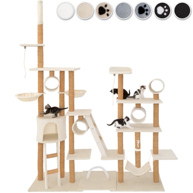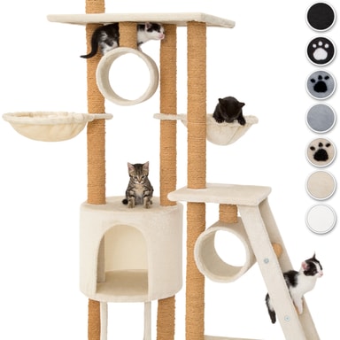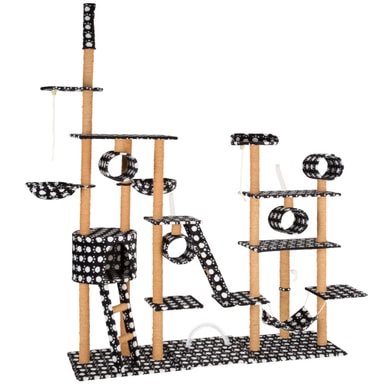 Med dette ekstravagante kattetreet fra tectake, vil selv den mest energiske kattungen få pengene sine verdt. Rør, soveplasser, en utsiktsplattform, en kattehule, en hengekøye og tilstrekkelige sisalstolpe for å skjerpe klør, gir variert underholdning på flere nivåer. En annen fordel ved å gi katten din en godt kloreepost er at de mest sannsynlig vil la møblene dine være i fred (men det er ingen garanti!). Understellet og den fleksible takstolpen gir denne konstruksjonen ekstra stabilitet og sikkerhet. Takket være størrelsen på kattetreet er det god plass til alle kattene dine, eller hvis du bare har et spesielt kjæledyr, vil dette store aktivitetssenteret være en skikkelig godbit! Gjemmer seg, skraper, leker eller sover: dette store kattetreet fra tectake vil ikke etterlate kattene noe å ønske.