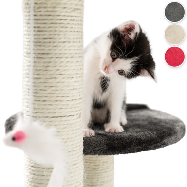 Et klorestativ er et flott høydepunkt for enhver katt eller kattunge, som bare blir bedre når du inkluderer et koselig gjemmested, utkikksplattformer og en museleke, og gjør den om til et episk kattetre! Med et kattetre kan katter slipe klørne optimalt mens møblene dine forblir urørt. Kattetrær integrerer standard skrapestolper med gjemmesteder å sove i, leker å leke med og plattformer å slappe av på og hoppe fra. Katter er nysgjerrige dyr som elsker å kartlegge omgivelsene sine, og observasjonsdekkene gir kjæledyret ditt det perfekte stedet å gjøre dette. Katter er også veldig nære sine ville slektninger, så en berikende lekeplass er perfekt for å uttrykke deres naturlige instinkter. Få dette Tommy kattetreet fra tectake, kattene dine vil elske det, og det vil også gi dem mye aktivitet!