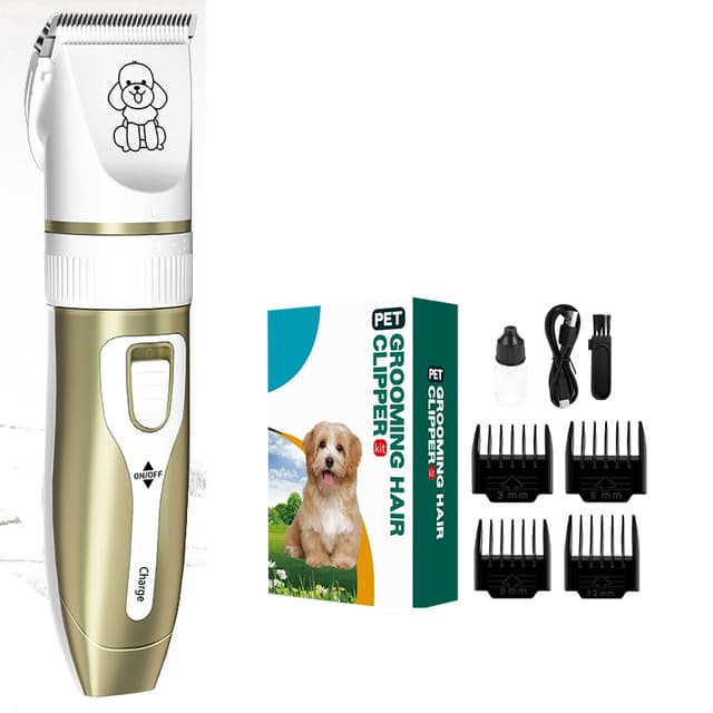 Komplett Grooming Kit: Dette omfattende settet inneholder alt du trenger for en profesjonell grooming-økt hjemme. Det leveres med fire guidekammer for å oppnå forskjellige pelslengder, en rengjøringsbørste for å opprettholde trimmerens hygiene, en USB-ladekabel for praktisk strømpåfylling og en brukerhåndbok for enkel betjening. Den medfølgende fargeboksen sikrer sikker oppbevaring og portabilitet, noe som gjør den til en perfekt gave til kjæledyreiere som verdsetter bekvemmelighet og kvalitet.