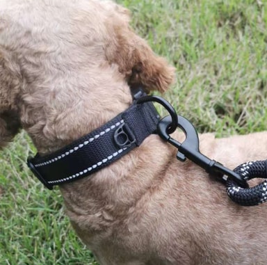 Førsteklasses materialer: Kragen er laget av mykt og elastisk nylonmateriale, og sikrer komfort for kjæledyrets nakke. Den inkluderer to reflekterende tråder for økt synlighet under dårlige lysforhold. Alle nylonbånd er behandlet med sying for å beskytte hundene dine, og hendene er ikke lette å skrape under bruk.