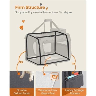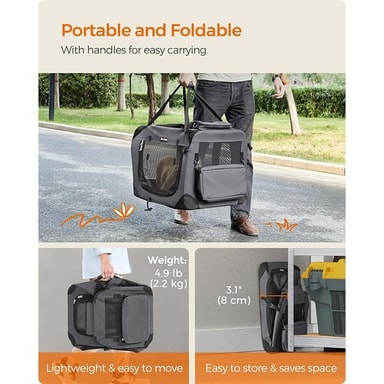 Denne praktiske og sammenleggbare hundevesken gjør det enkelt og komfortabelt å ta med hunden på tur, til veterinæren eller på reise. Med generøse mål på 60 x 42 x 42 cm gir den rikelig med plass, samtidig som den føles trygg og innbydende for kjæledyret ditt.