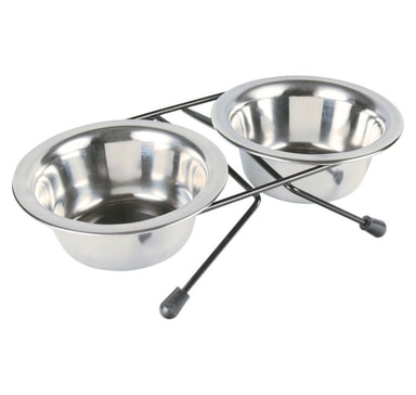Skålsett rustfri 2 skåler i rustfritt stål med stativ pulverlakkert metallstativ, sort sklisikre på grunn av erstatningsskåler med gummiføtter: vare 24840–24844Les mer om produktet