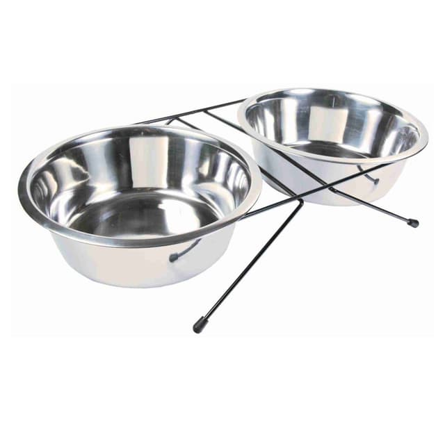 Skålsett ikke-korrosive 2 skåler i rustfritt stål med stativ pulverlakkert metallstativ, svart sklisikre på grunn av erstatningsskåler med gummiføtter: vare 24840–24844Les mer om produktet