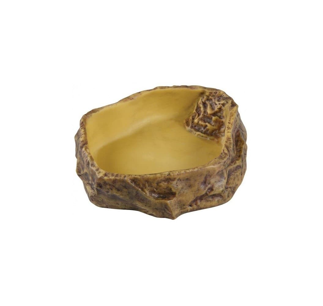 Disse drikkekarene har en veldig naturlig og realistisk steinlignende utvendig finish og en glatt, bulkfri overflate innvendig. Drikkevarer har et belegg for å forhindre utvikling av skadelige bakterier og for å forenkle vask. Den nøytrale, naturlige fargen gjør det enkelt å integrere drikkevarene i ørken, tropisk eller hvilken som helst type terrarium. Mindre krypdyr, amfibier og insekter kan lett komme seg ut av drikkeskålen takket være redningstrinnene inne i drikkeskålen og unngå å drukne. - det naturlige utseendet tillater integrering i alle typer terrarium - lett å vaske - trinnene redder sirisser og andre mindre terrariumskapninger fra å drukne - den ikke-porøse og glatte overflaten absorberer ikke skadelige bakterier - produsert av spiselig gummi - veldig fast, vanskelig å velte av større krypdyr