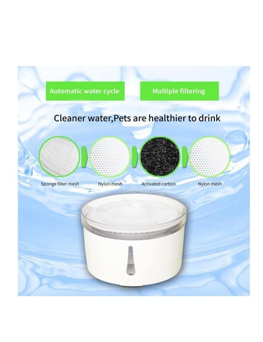 Dual filters: Det dobbelte filtersystemet sørger for at hver dråpe vann ditt kjære kjæledyr drikker er friskt og rent. Vurderer å bytte filter regelmessig, finner du passende karbonfiltre under artikkelnummer PFM-XPFX901GL-12.