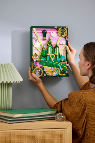 En detaljert, byggbar LEGO kunstgave for voksne fans med sju karakterer og ikoniske landemerker fra Wicked-filmeneLes mer om produktet