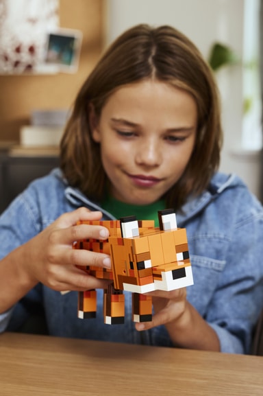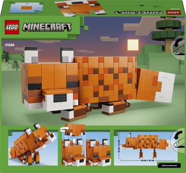 Byggesettet gir barn muligheten til å bygge en imponerende stor og realistisk modell av reven fra spillet, og det gjør det til en perfekt gave til Minecraft-spillere og fans av videospill-merch. Revefiguren har bevegelige bein, roterende hals, hode som kan beveges, og øyne som kan åpnes eller lukkes. Den kan plasseres våken og stående, sittende med hodet på skakke, sovende og liggende. Og med LEGO Builder appen får barn god mestringsfølelse med barnevennlige, digitale instruksjoner for zooming, 3D-rotering og sporing av framdrift. Settet består av 497 deler.