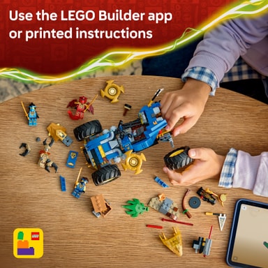 Gjenskap action fra sesong 4 av TV-serien NINJAGO Dragene våker med settet LEGO NINJAGO Jays forvandlingskjøretøy med fem minifigurer.Les mer om produktet