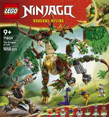 Jenter og gutter fra ni år får en spennende byggeopplevelse med ninja-leken LEGO® NINJAGO® Livets drage (71859), og etterpå kan de gjenskape scener fra sesong 4 av TV-serien NINJAGO Dragene våkner. Drageleken kan ha utspredte eller sammenfoldede vinger og har kjeve, hode, hals, bein, ankler, klør og hale som kan beveges, samt en sal med plass til en minifigur.
