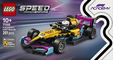 I 2026 vil LEGO konsernet bli en del av F1 ACADEMY™-startfeltet for første gang noensinne, med sin egen F1 ACADEMY-bil, og jenter og gutter fra ti år kan bygge sin egen utstillingsmodell av bilen. LEGO® Speed Champions F1 ACADEMY™ LEGO® racerbil (77258) er perfekt til lek og utstilling og inkluderer mange av detaljene til modellen som brukes i F1 ACADEMY – racerbilserien med kvinnelige sjåfører.