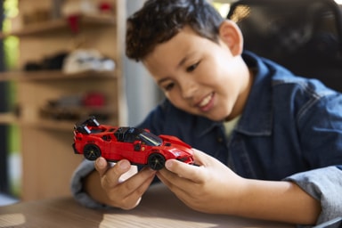 Barn fra ni år kan bygge, stille ut og arrangere actionfylte billøp med modellen LEGO Speed Champions Sportsbilen Ferrari SF90 XX Stradale.Les mer om produktet