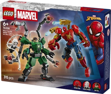 Begge robotene er fullt bevegelige, noe som gir maksimal dynamisk action, og de har hver sin cockpit med plass til en minifigurpilot. Spider-Man-roboten er i Iron Spider-stil og har to bevegelige, knappestyrte knotteskytere. Doc Ock-roboten har fire fullt bevegelige tentakler. Settet inkluderer også to nettau som er lette å feste til roboter og minifigurer, og Ghost Spider har slynger som kan festes til Doc Ock-robotens overkropp. Denne LEGO ǀ Marvel Spider-Man roboten er en flott gave, og med LEGO Builder appen kan barn bygge og føle mestring mens de zoomer, roterer i 3D og sporer framdriften sin med digitale instruksjoner. Byggesettet består av 315 deler.