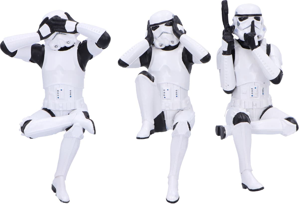 Nemesis Now Three Wise Sitting actionfigur viser Stormtrooper-figurer på en leken måte, og etterligner den klassiske «Se intet ondt, hør intet ondt, tal intet ondt»-tropen.Les mer om produktet