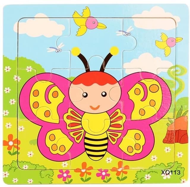 Rampesl med 9-biter for de mindre barna. Fargerikt puslespill med dyremotiv som strekker seg over hele rammen.