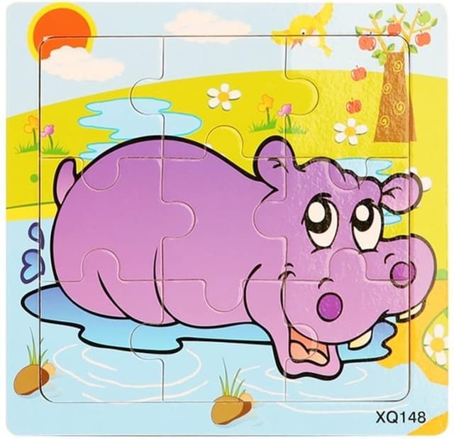 Rampesl med 9-biter for de mindre barna. Fargerikt puslespill med motiver som strekker seg over hele rammen.