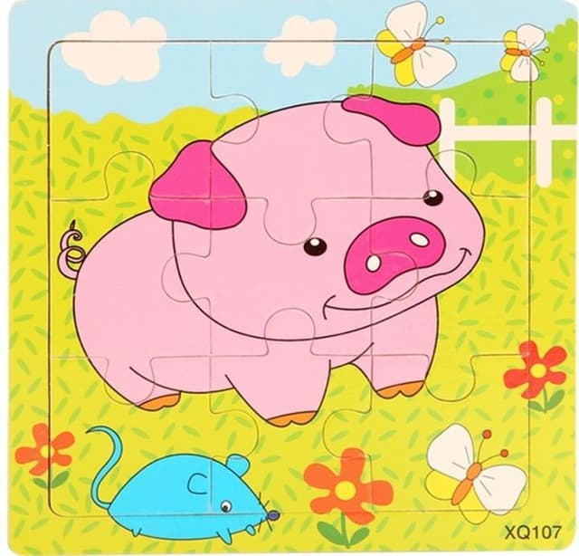 Rampesl med 9-biter for de mindre barna. Fargerikt puslespill med motiver som strekker seg over hele rammen.