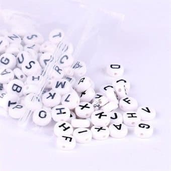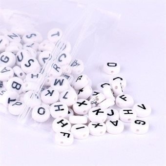 300 stykker blandet plastperler med hele alfabetet (ikke de norske ÅÆØ bokstavene).