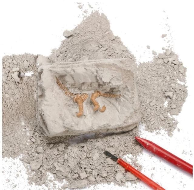 En morsom og lærerik leke som lar barna grave ut dinosaurer. Settet inneholder en gipsblokk og verktøy for å grave ut dinosauren. Det er nødvendig å være forsiktig når man graver ut dinosauren, noe som kan trene opp barnets følsomhet og øke forståelsen for at man noen ganger må være forsiktig med ting. Kanskje vekker det også en ny interesse for historie og biologi - hvem vet!