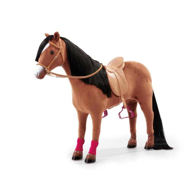 Bfriends er fine dukker med misunnelsesverdig hår du kan style som du vil. Og så er de venner alle sammen! Og nå er det en venn til i Bfriends-gjengen! De kan nemlig dra ut og ri nå. Hesten har en realistisk manke og hale som kan settes opp og friseres. Pelsen dens er kjempemyk! Hestens bein kan bevege seg, som gjør lekingen din mer realistisk. Settet inneholder også sal, tøyler, stigbøyler, støttesokker og et sertifikat. Hesten kan brukes av de fleste dukker på 46 cm. Egnet for barn fra 3 år.
