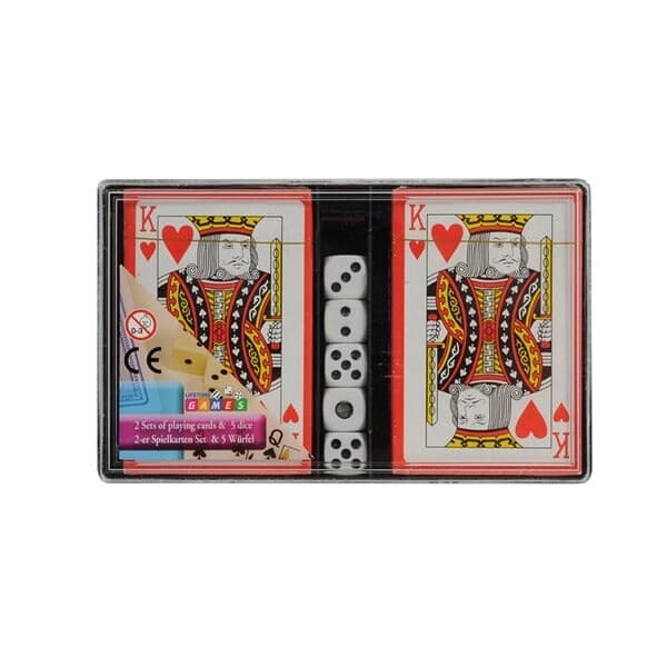 Eske med spill - 2 Kortstokker & 5 Terninger