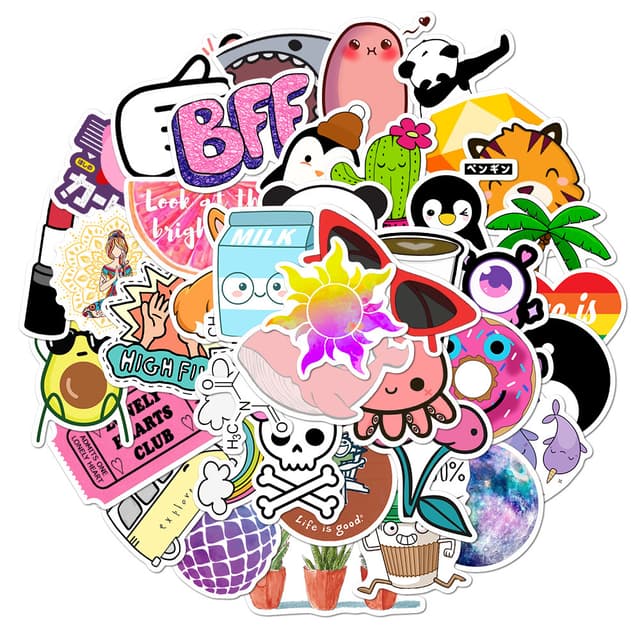 50 søte klistremerker med fine animasjoner i forskjellige mønstre. Disse klistremerkene passer til å dekorere de fleste gjenstander. Nesten ingen duplikater.