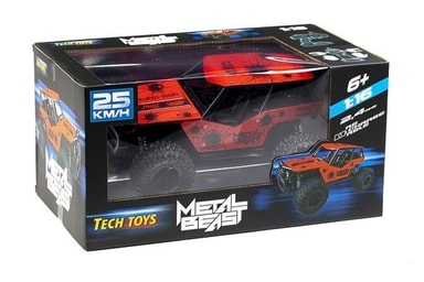 Metal Beast har nå kommet i en superfet rød versjon som uten tvil vil tiltrekke seg oppmerksomheten til kompisene dine. Fjernkontrollen er med den nyeste 2,4 GHz-teknologien, og du kan enkelt kjøre med flere biler om gangen!