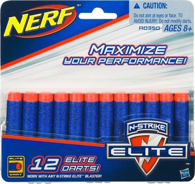 Sikt deg inn med disse NERF N-Strike Elite pilene som passer til alle NERF N-Strike Elite blastere og som lar deg vinne enhver kamp. Pakken inneholder 12 blå piler med oransje topp som lar deg skyte fra lang avstand.Les mer om produktet