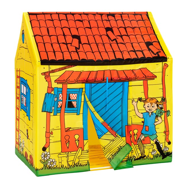 Et klassisk lekehus i stoff for alle travle barn! Lek sprø Pippi-leker, eller finn frem favoritteventyret for en kosestund i det lille huset! Gå inn og ut gjennom stoffdøren, eller rull den opp og fest den med stroppen hvis du vil at døren skal stå åpen. Gardinene i de tre vinduene kan rulles opp. Gulvet i lekehuset er også av stoff. Villa Villekulla som leketelt er en sikker vinner både på barnerommet og i hagen eller kanskje som et gjemmested under gjemsel? Pippi-teltet er enkelt å sette opp og ta ned. Med Pippi-leker kan barnet gjenfortelle en av de populære historiene om Pippi Langstrømpe eller finne på sitt eget eventyr! Her finner du et komplett utvalg av Pippi-leker som myke Pippi-dukker, Pippi-figurer, Pippi-hus, kostymer, gåter og barnesekker. Lek med verdens sterkeste jente! Ikke rart Pippi er en favoritt blant mange barn. Astrid Lindgrens historier om Pippi Langstrømpe fortsetter å underholde barn og Ingrid Vang Nymans klassiske illustrasjoner gir lekent liv til lekene.