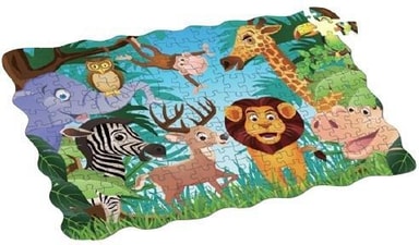 Animal Puzzle er et puslespill bestående av 208 brikker. Puslespillet har et festlig, fargerikt bilde av 9 jungeldyr. Puslespillet måler 90 x 64 cm. Animal Puzzle leveres i en solid pappeske med et praktisk håndtak.