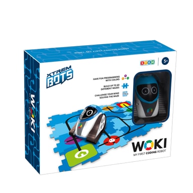 Få en introduksjon til programmeringens verden med Woki, roboten som kan lese farger! Du kan lage labyrinter og hinderløyper med de 81 medfølgende brikkene, programmere bevegelser med fargebrikkene og hjelpe Woki med å løse utfordringene! Når Woki kjenner igjen farger, utfører han forskjellige pre-programmerte handlinger. Kombiner brikkene på forskjellige måter for å lage massevis av labyrinter eller følg instruksjonene for å sette sammen en pre-designet labyrint som gir deg 60 forskjellige utfordringer. Ved å leke med roboten utvikler barna sin logiske sans, problemløsning, STEM-læring og kognitiv tenking. Woki måler 9,7 cm. Roboten krever 3 x AAA-batterier (ikke inkludert). Egnet til barn fra 5 år.