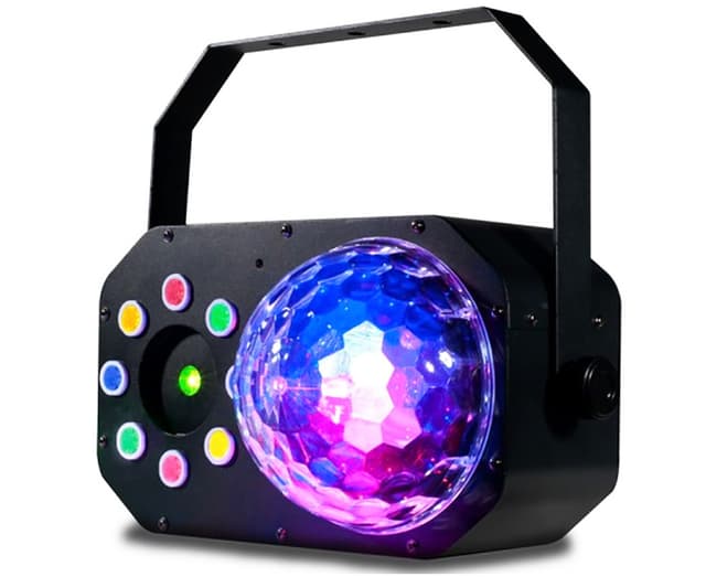 3-i-1 multi-effekt: moonflower, strobe / color chase, rød og grøn lasereffekt. Kraftig LED effekt 6 x 3 W RGBWA + UV LED'er + 8 x 1 W RGBA LED'er + Rød og grøn laser. DXM: 2 eller 14-kanals modes Musikk + auto Master / slave 6 innebyggde shows 63 forutinnstillinger av fargekombinasjoner. 4-sifret LED digitalt display IEC inn / ut strømforsyning 3 polet inn / ut DMX.